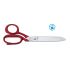 Rode poedergecoate handgreep. Bladen blauw geslepen. Geheel links = bladen en handgrepen in spiegelbeeld.